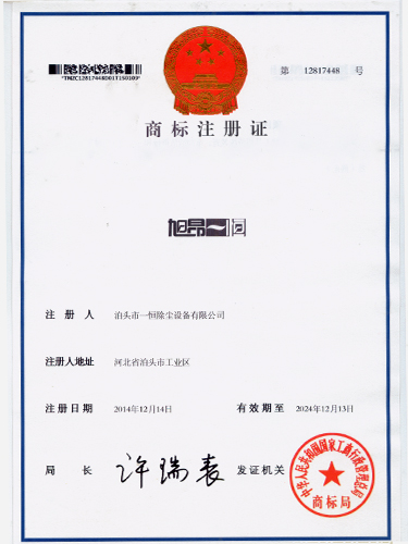 一恒商標注冊證-一恒商標注冊證-泊頭市一恒除塵設(shè)備有限公司
