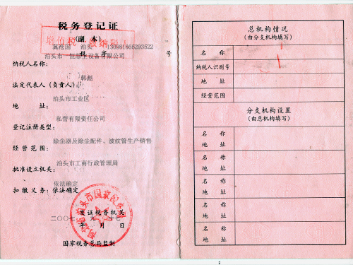 一恒稅務(wù)登記證-一恒稅務(wù)登記證-泊頭市一恒除塵設(shè)備有限公司